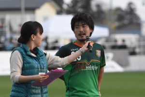 ヒーローインタビューはシュートを決めた金久保選手でした。