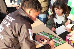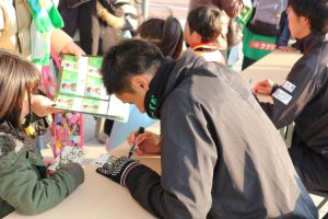 サイン会には#3成田選手、#23西村選手、#16舛沢選手、#20三根選手が参加しました。