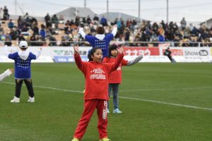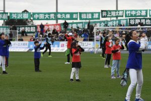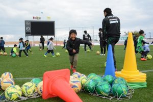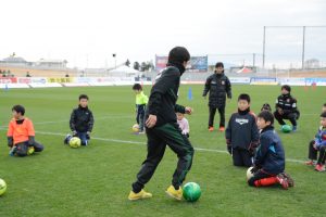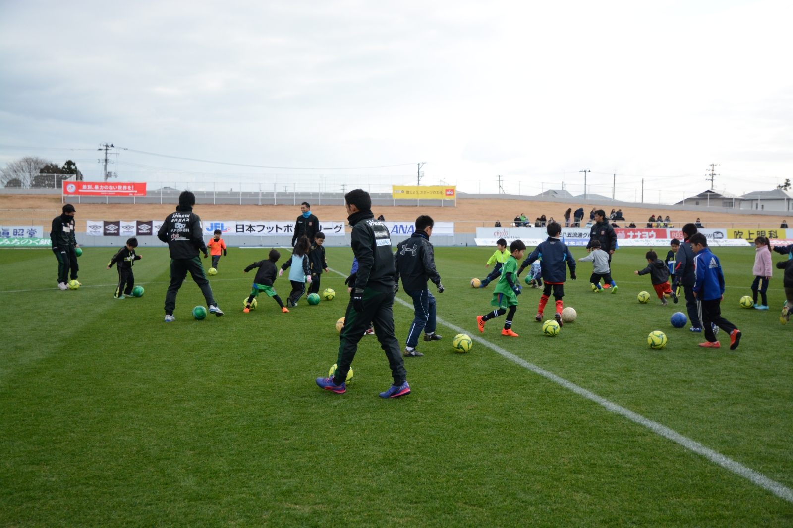 試合前には明治安田生命様ご協力のもと、サッカー教室が開催されました。