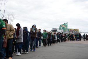 寒い中での試合となりましたが、スタジアムには2,765人のサポーターが観戦に来てくれました。