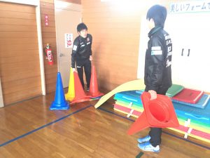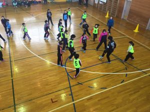 その後体育館へ移動し、ふれあいサッカー教室を開始。
