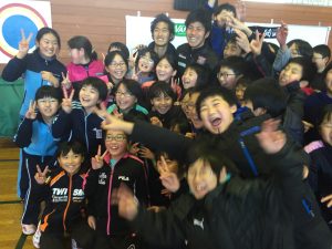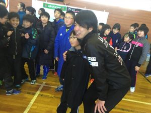 生徒のみなさんは目を輝かせ、選手と触れ合っていました。