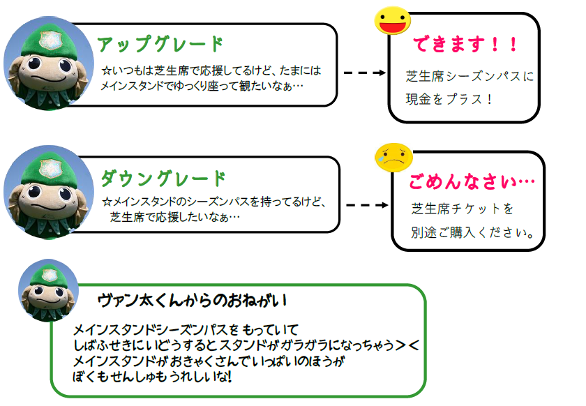 メインスタンド→芝生席への変更希望・キャンセルの方は、お手数ですが