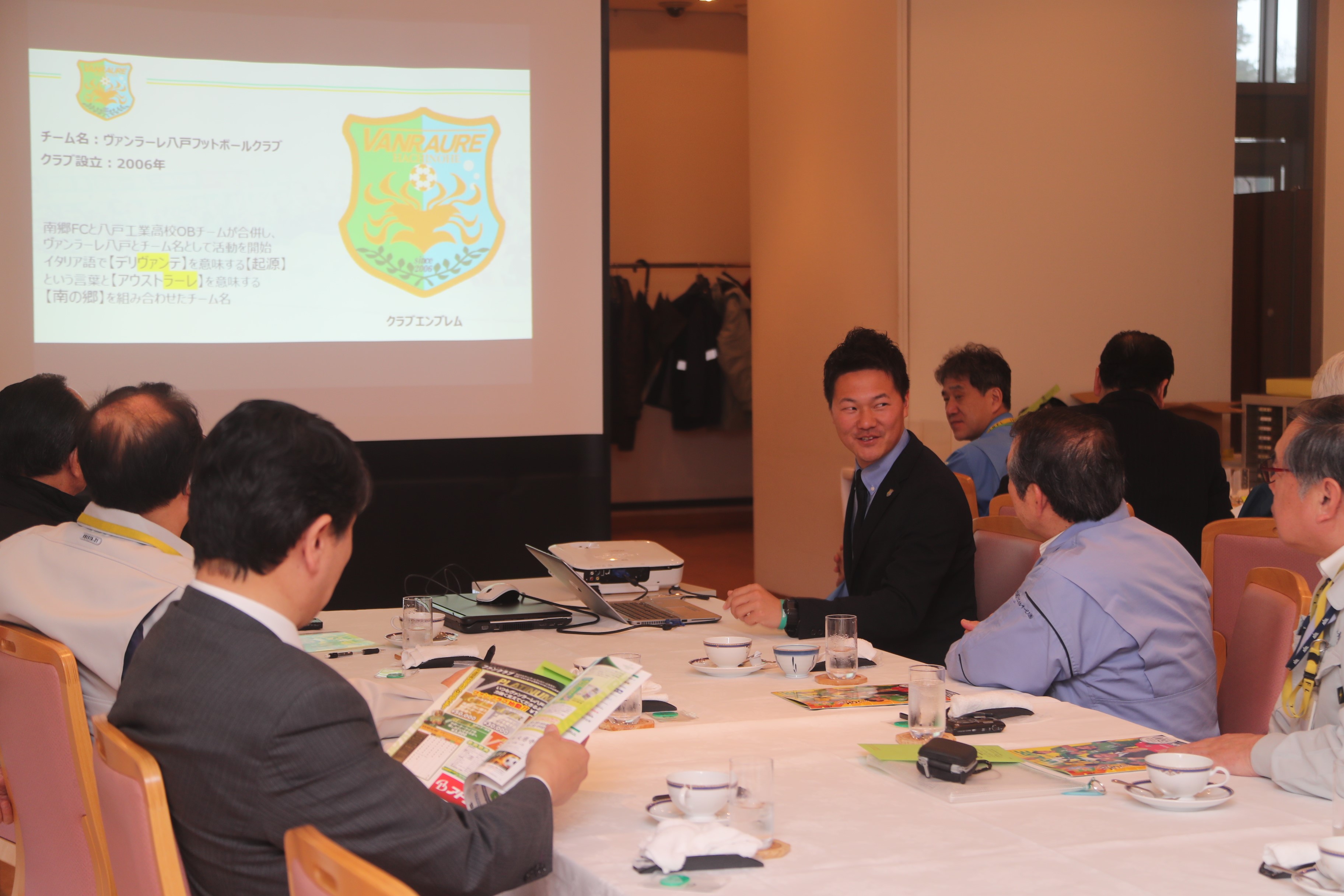 約30名の会員様にご参加いただき、30分ものお時間を頂きましてヴァンラーレ八戸のクラブの成り立ちや歴史、ホームタウンでの活動実績、それに伴って変わってきたクラブの観られ方・在り方、Jに昇格する条件やその後の展望などをお話ししました。