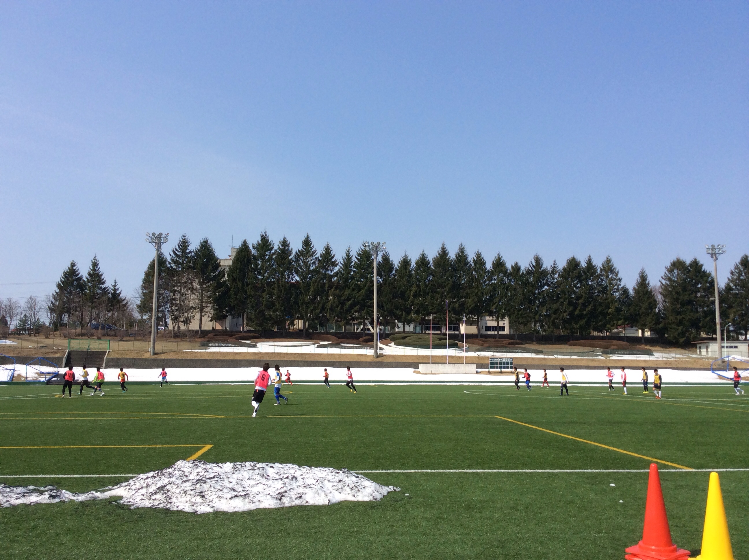 これまでのフットサルアリーナでの練習では、スパイクを履かない、実際のグランドよりも狭い環境での練習でしたが、本日からは整った環境の中で練習が出来るようになりました。