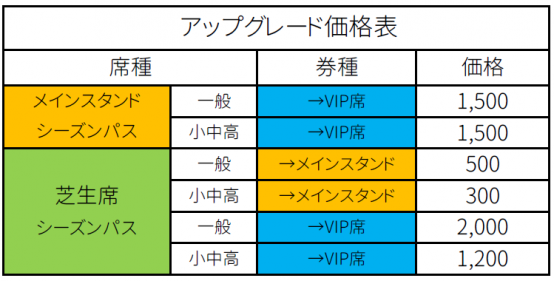 | 【シーズンパス】 アップグレードして屋根付きVIP席で観戦しよう!! |