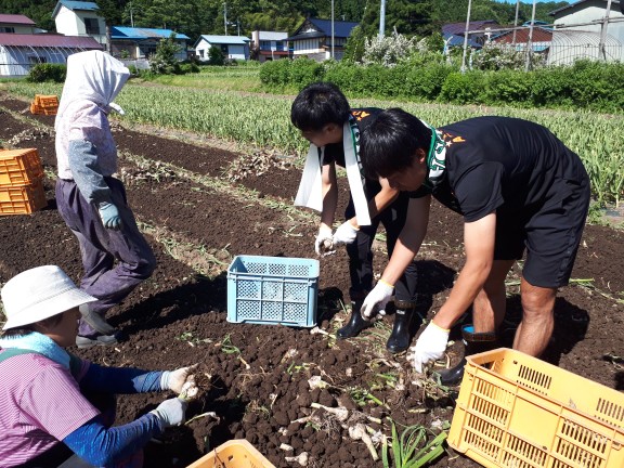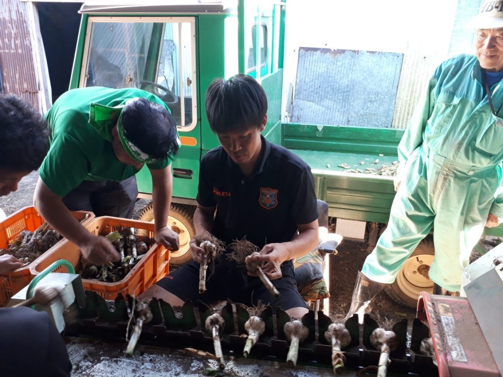 2回目の6月25日(月)は三戸郡田子町の梅内様のにんにく収穫の手伝い(援農)を行いました。