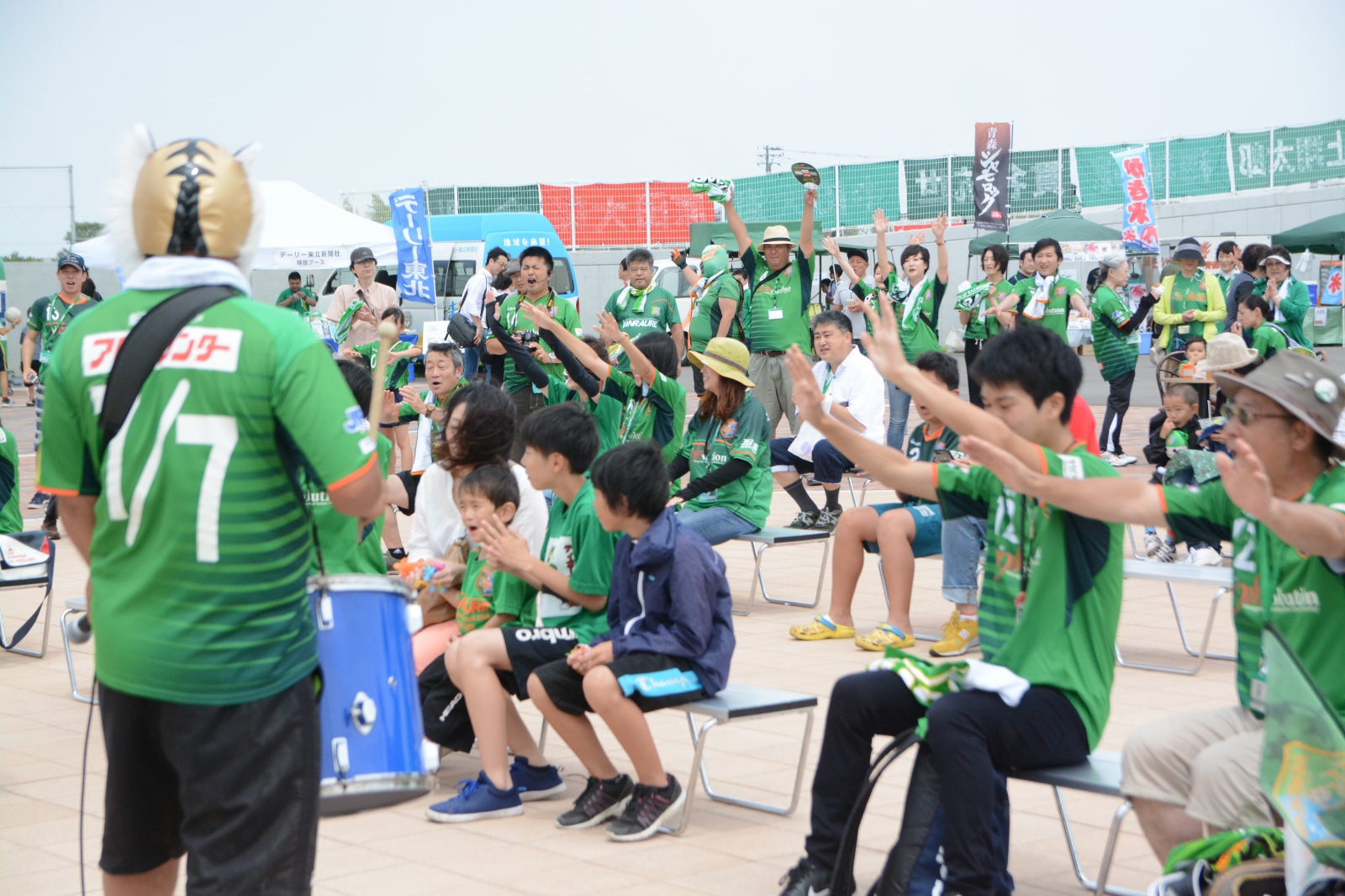 会場周辺では銚子物産展や、公式ソング『GREEN WIND』を歌う、
