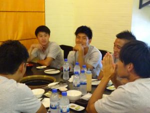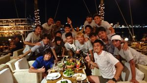 ↑JFL選抜 vs U-19カンボジア代表の集合写真と、試合後に訪れたカンボジア料理店での様子