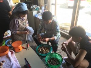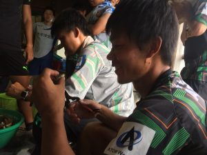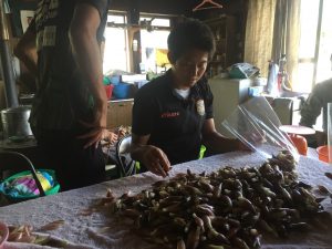 収穫したミョウガ50㎏を大きさ選定、洗浄、根切り、袋詰め、出荷と秋吉選手の強烈(無駄)なリーダーシップのおかげで大人数での作業をスムーズに終えることができました。