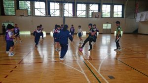 選手たちの自己紹介のあとサッカー教室を開催しました。
