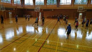 素晴らしい講話のあとはみんなでウォーミングアップ!