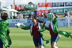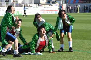 ハーフタイムには大江戸ワハハ本舗の5人が『GREEN WIND』の曲に合わせて