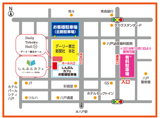 ①デーリー東北新聞社 北口駐車場をご利用下さい。(図参照)