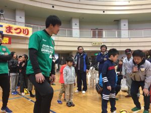 ドリブル対決では、たくさんの方に参加していただき、町民のみなさんとふれあいました。
