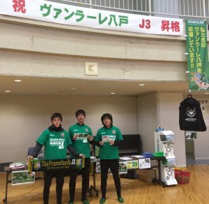 本日 ヴァンラーレ八戸 ホームタウンの三戸町でアップルドームで開催された。三戸農林商工まつりへヴァンラーレ八戸 #10 新井山祥智 #39 近石哲平 #44 秋吉泰祐の3選手が参加し、J3昇格報告と餅まき、ドリブル対決、昇格グッズ販売を行いました。