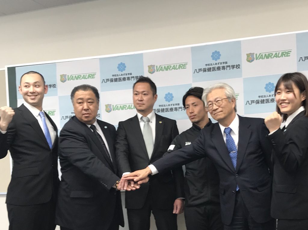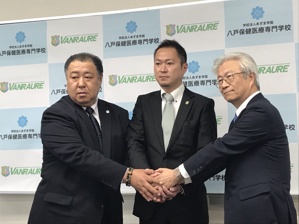 本日、学校法人あずま学園八戸保健医療専門学校(八戸市田向2丁目11-15)にて業務提携会見を執り行いました。