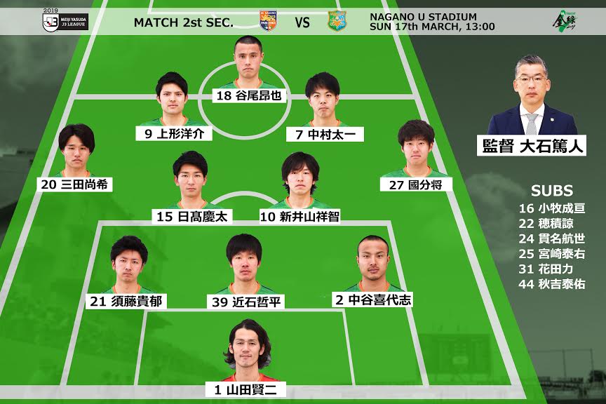 本日行われました2019明治安田生命J3リーグ 第2節 vs AC長野パルセイロ(長野Uスタジアム)との試合結果をお知らせいたします。