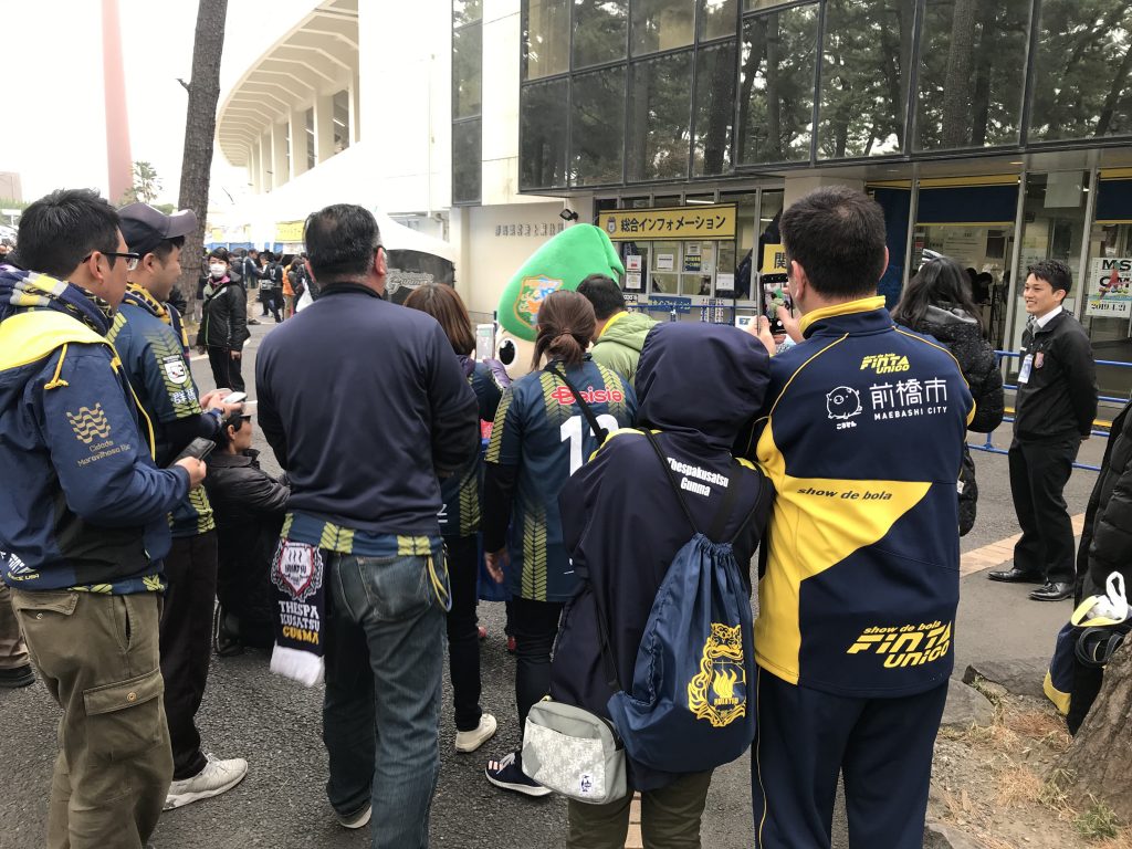 3か所に分かれ17時頃からホーム戦の告知チラシを配ります。
