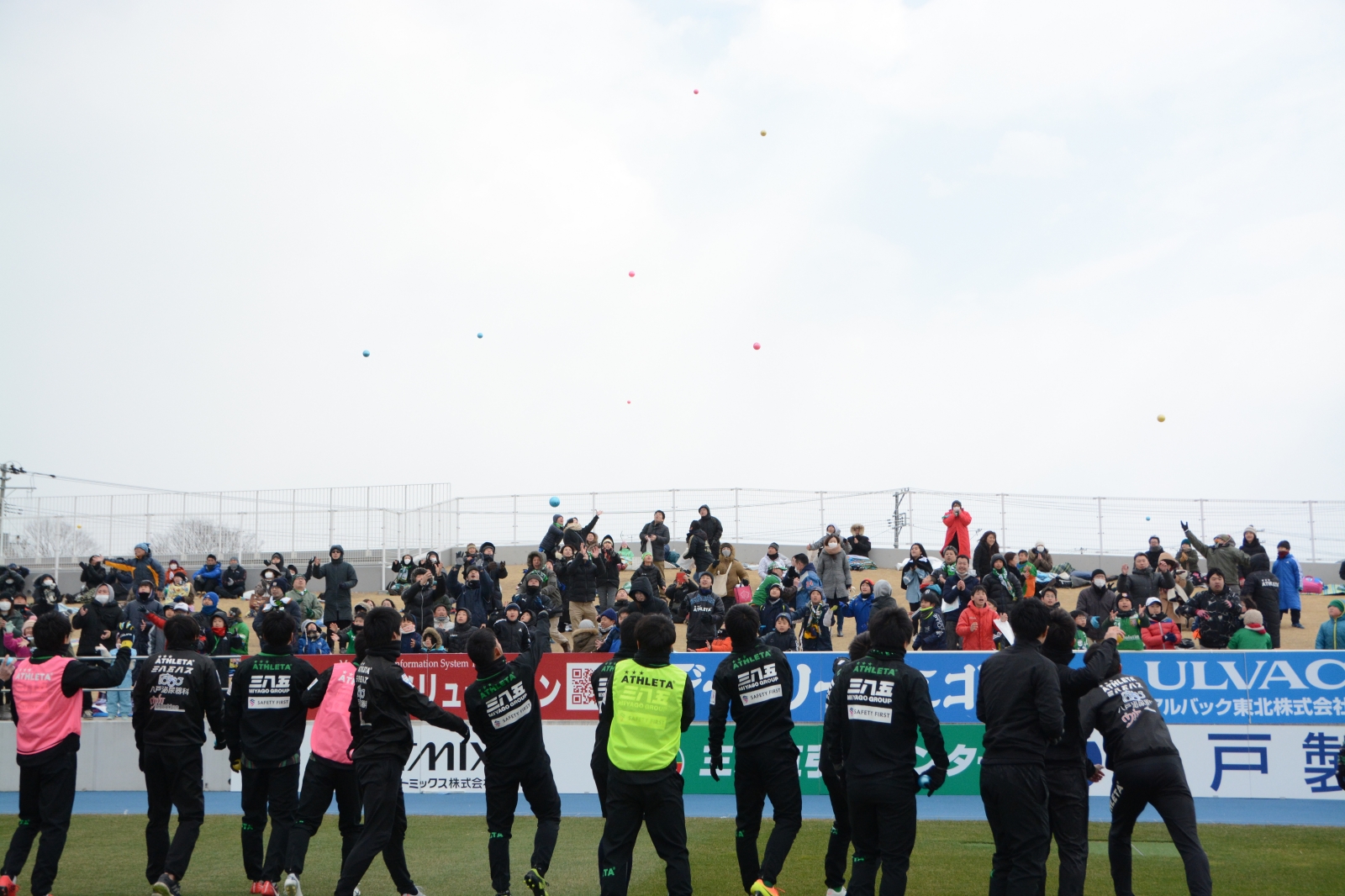デーリー東北マッチデーということで、毎回大好評のサインボール投げ込みイベントを実施しました。誰のサインボールを手に入れましたか?