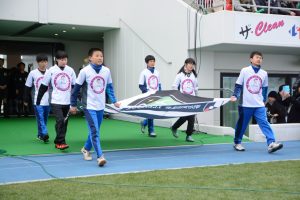イオン×Jリーグ2019年Jリーグ開幕キャンペーンにご応募いただいた方が、クオリティフラッグを掲げ入場しました。