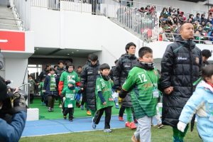 今シーズンもファンクラブジュニア会員限定でエスコートキッズを募集します。第1回目となるこの試合でも、たくさんの子供たちが参加してくれました。