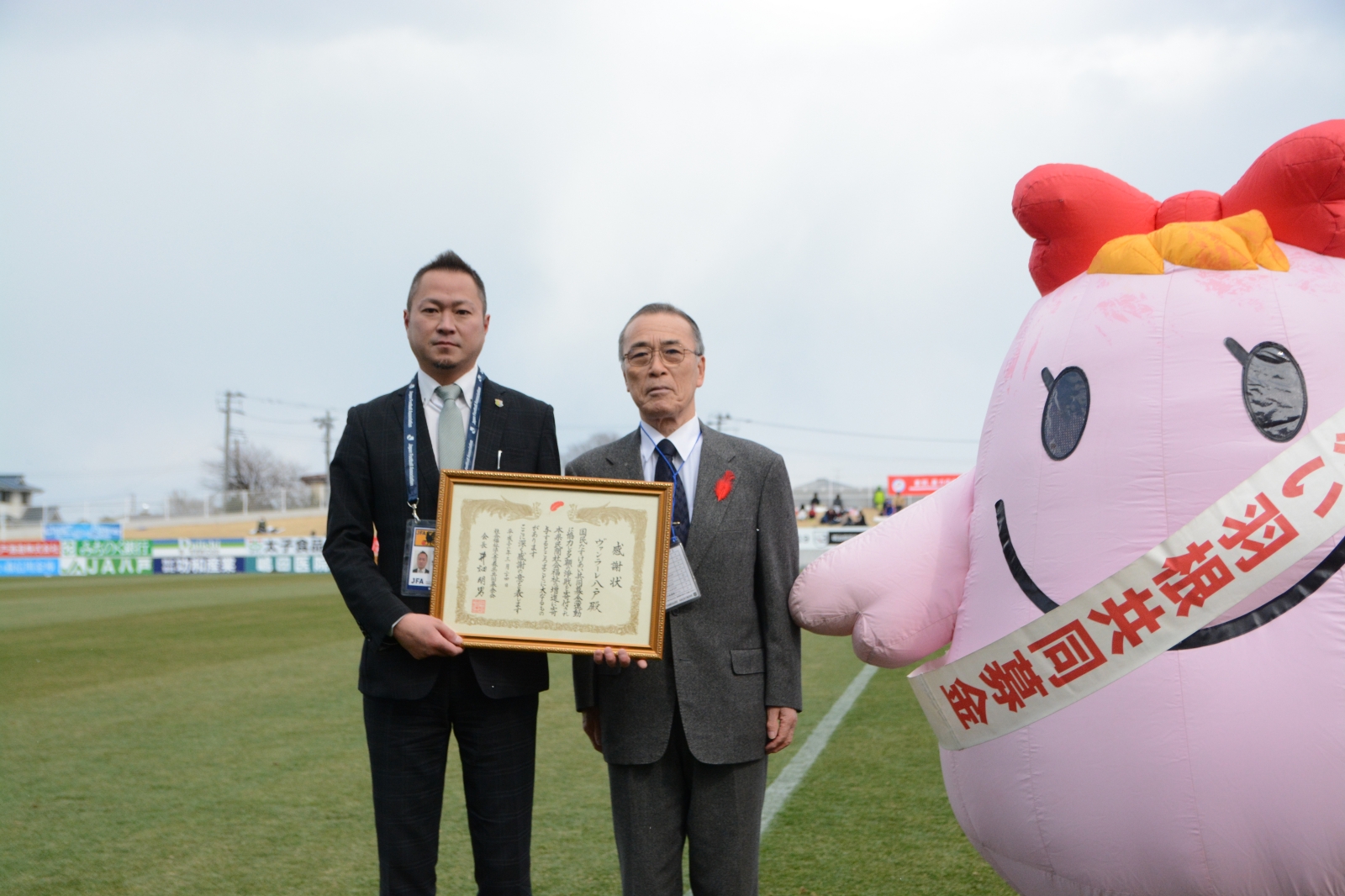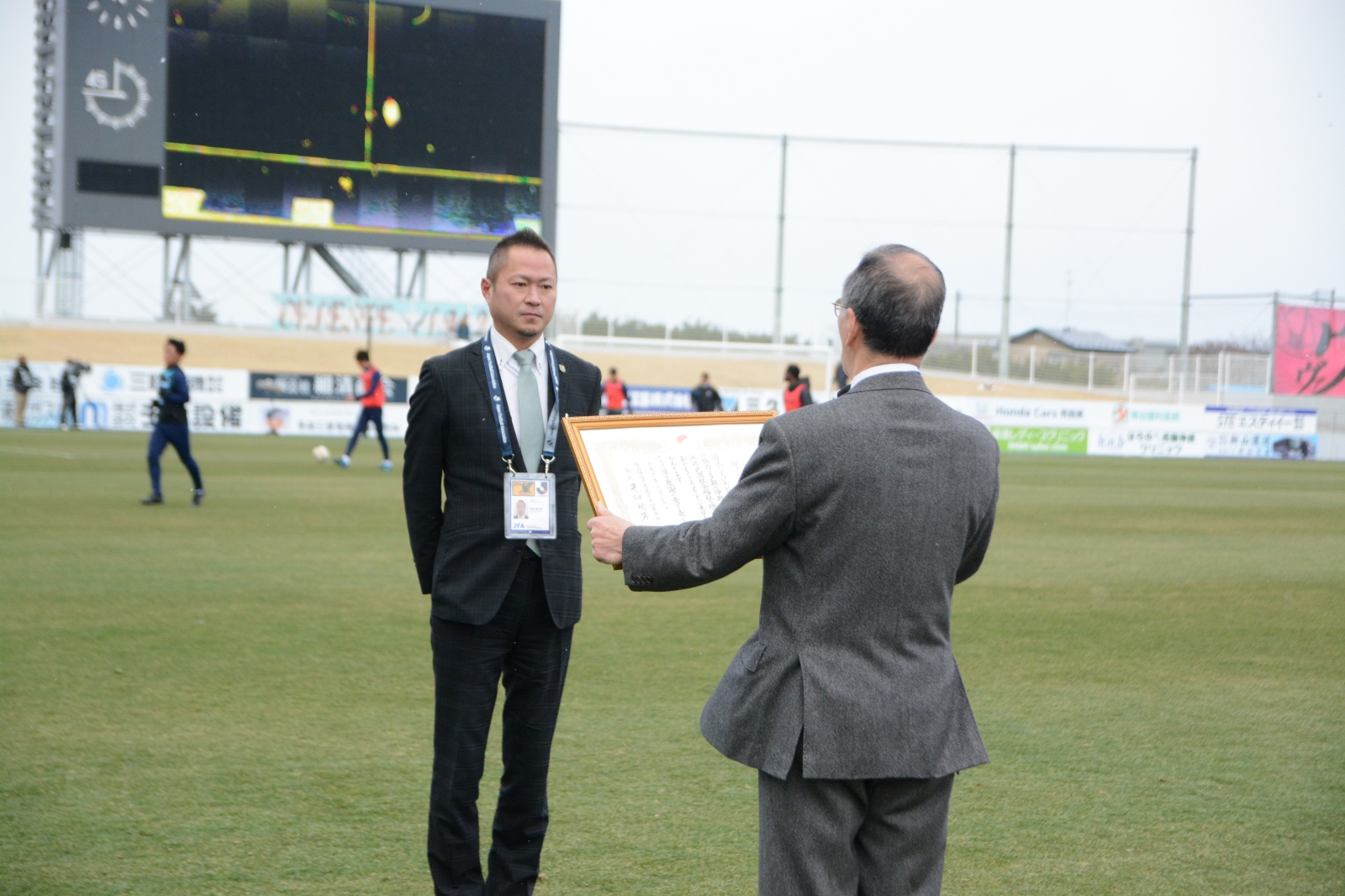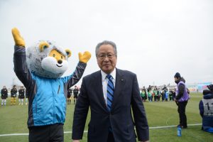 ホームタウンの代表者もピッチに登場し、代表して八戸市長 小林 眞さまより挨拶を頂戴いたしました。