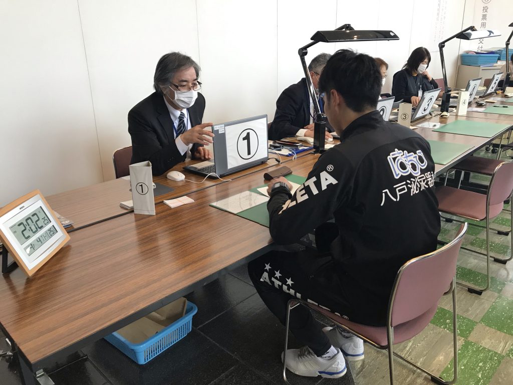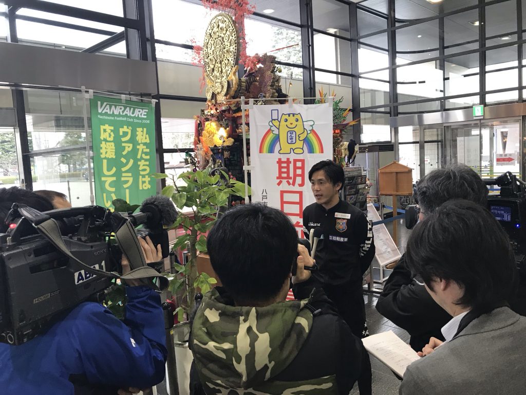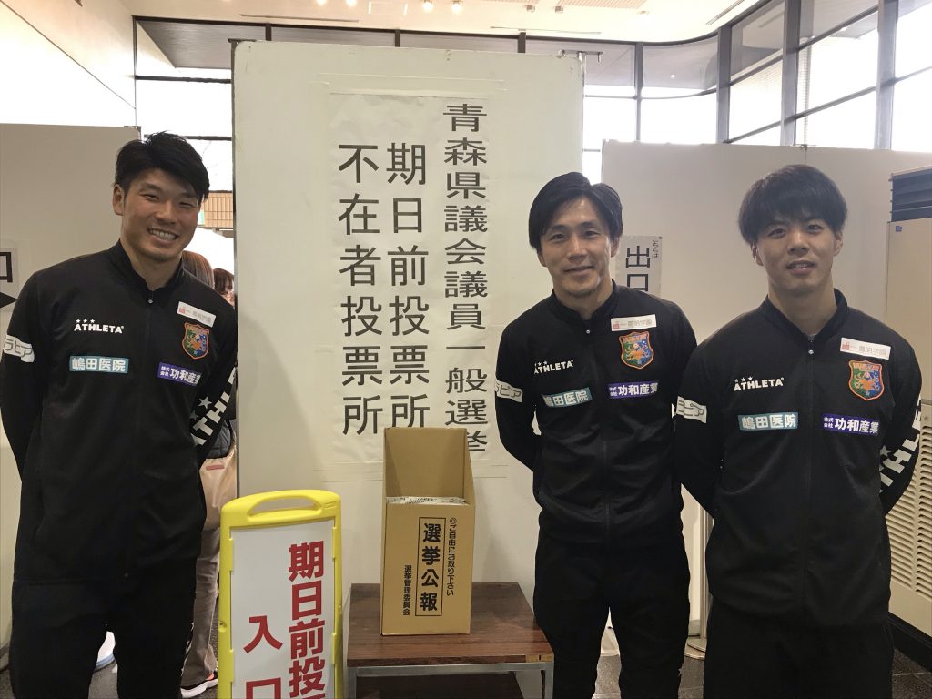 本日、青森県議会議員一般選挙を前にヴァンラーレ八戸の#7中村太一選手 、#22穂積諒選手 、#44秋吉泰佑選手 が八戸市庁本館1階市民ホールを訪れ、期日前投票を行い、有権者に投票を呼び掛けました。