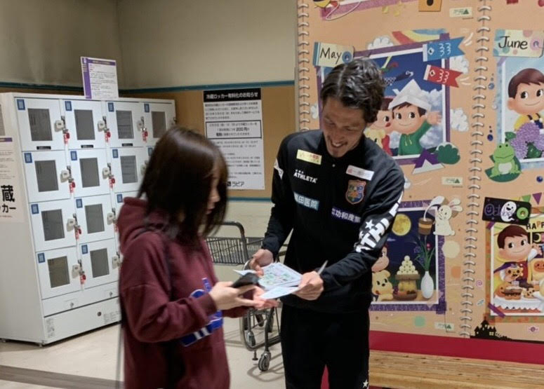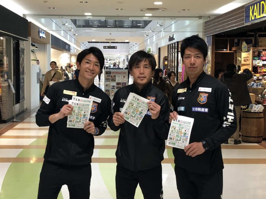 本日、5月19日(日)に行われます2019明治安田生命J3リーグ第9節ヴァンラーレ八戸vsアスルクラロ沼津戦(ホーム戦)を、一人でも多くの方に知っていただき、スタジアムへお越しいただけるようチラシ配布による告知活動を行いました。
