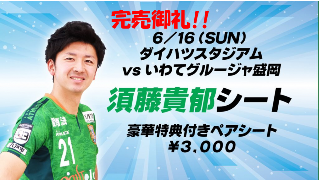【特別VIP席】選手応援シート『須藤貴郁選手応援シート』は大好評のため完売となりました。たくさんのお問合せ・ご購入ありがとうございます。