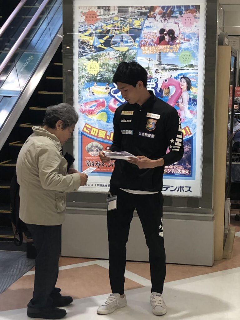 本日、6月16日(日)に行われます2019明治安田生命J3リーグ第12節ヴァンラーレ八戸vsいわてグルージャ盛岡戦(ホーム戦)を、一人でも多くの方に知っていただき、スタジアムへお越しいただけるようチラシ配布による告知活動を行いました。