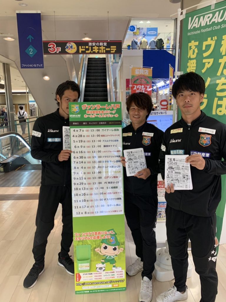 ヴァン太もラピアで選手と一緒に告知活動を行いました。