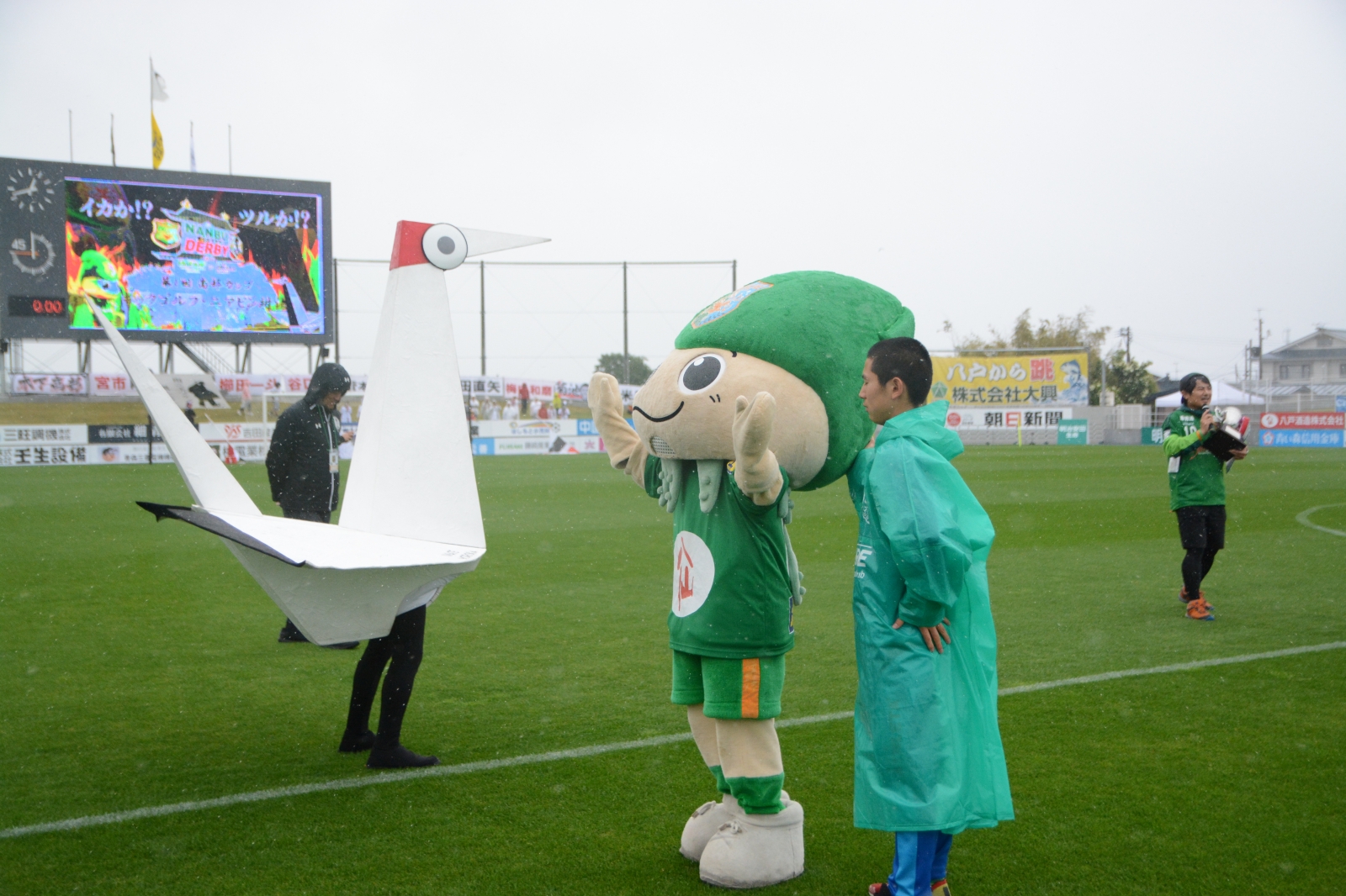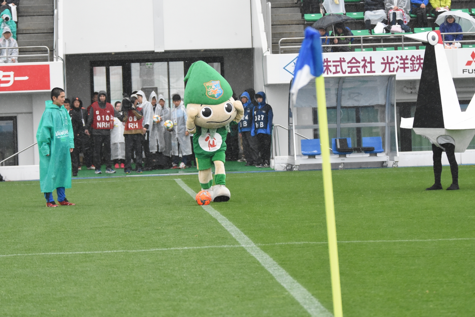 マスコット対決『キックゴルフ☆ニアピン対決』はキヅール(いわてグルージャ盛岡)の勝利!