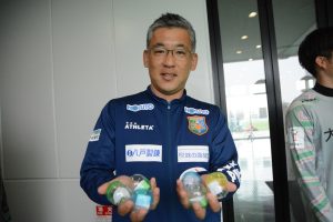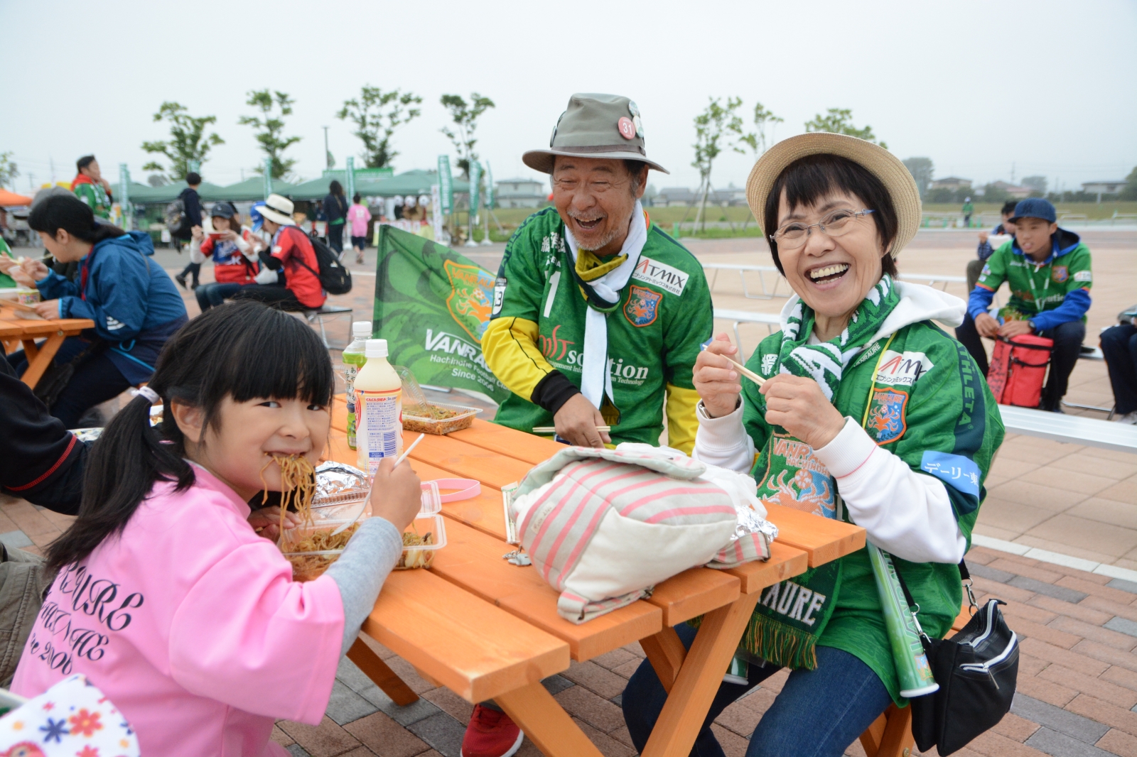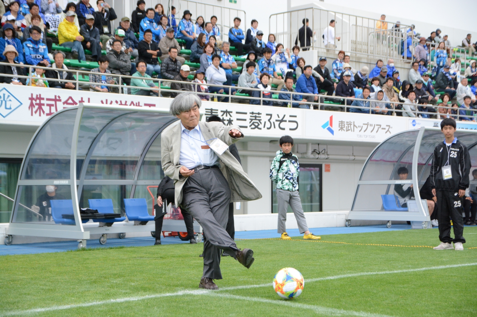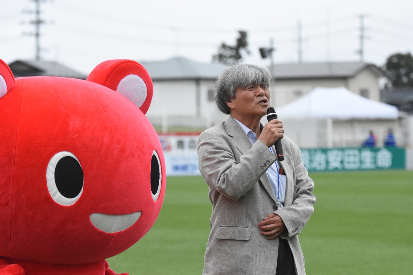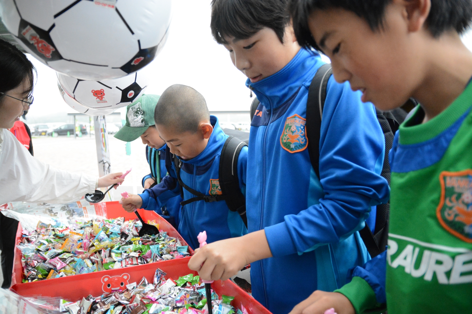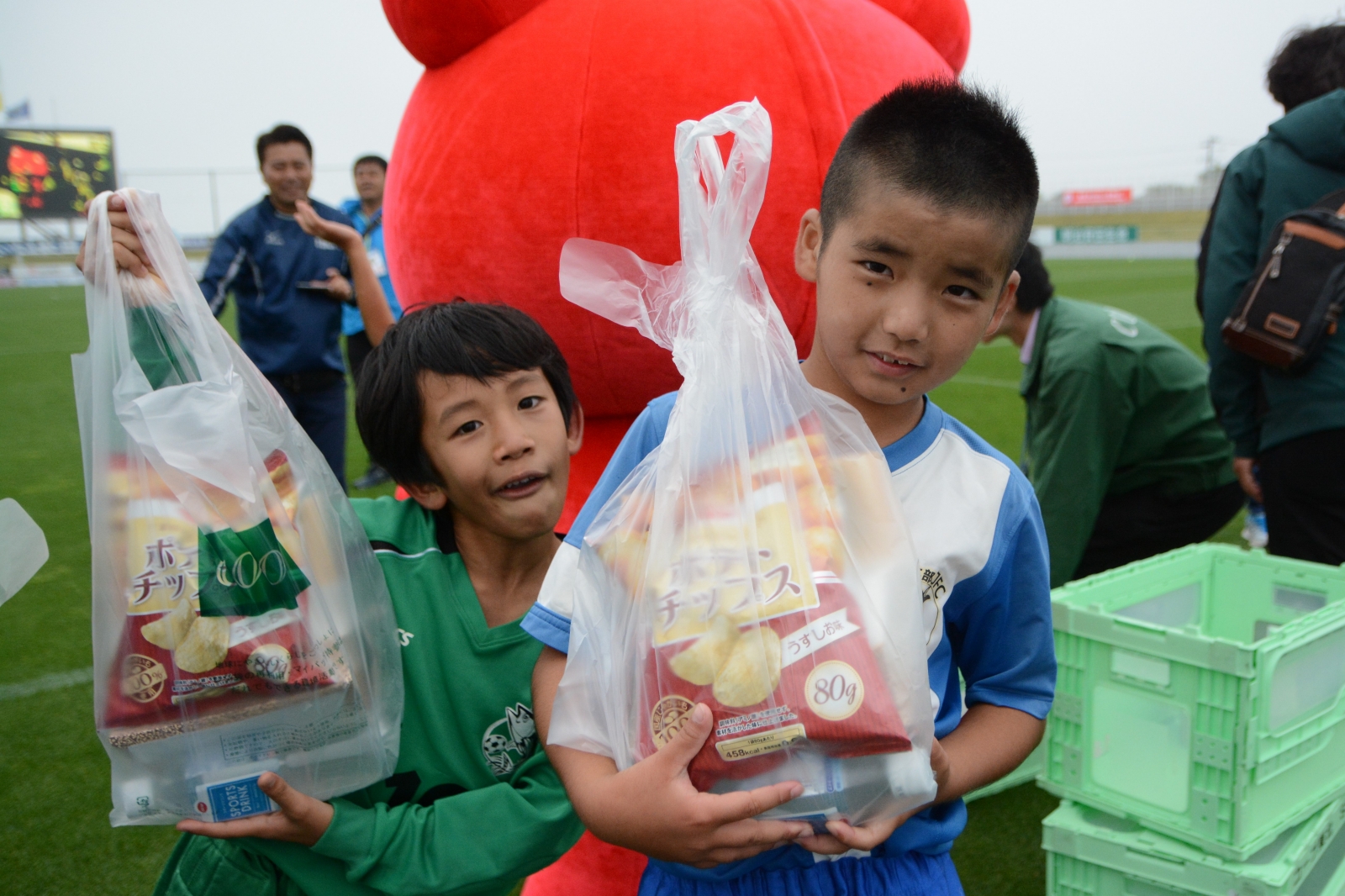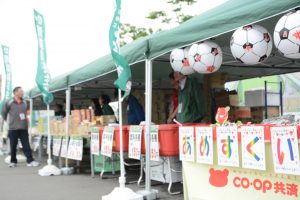 生協マッチデーとして、物品の販売や青森県民生協理事長 平野了三さまによります挨拶・キックオフセレモニー、カプセル投げ込みイベントが行われました。