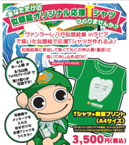 ※ラピア似顔絵展へ出品していない方でもオリジナル応援Tシャツ申込み可能です。申込書をダウンロードしホーム戦会場へお持ちください。