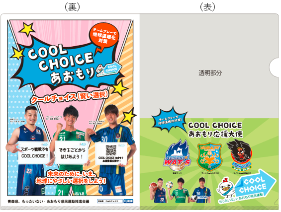 みんなで地球温暖化対策のために『賢い選択』をしていこう!というCOOL CHOICEあおもりの趣旨に賛同・宣言いただける方に、COOL CHOICEあおもり応援大使コラボクリアファイルとエコグッズをプレゼント(先着100名)
