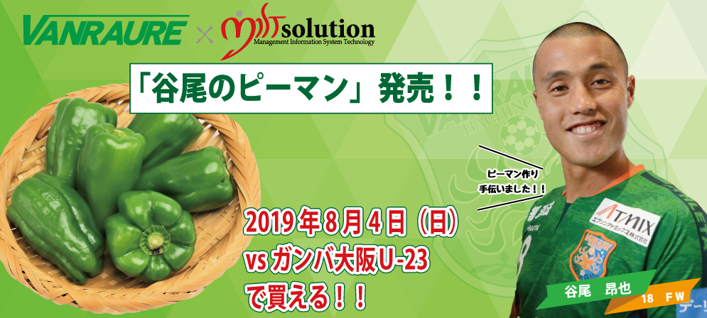 つきましては、その第1弾として、愛情とまごころを込めて選手とスタッフが育てた「谷尾のピーマン」を8月4日に開催される「明治安田生命J3リーグ第19節 ヴァンラーレ八戸 vs ガンバ大阪U-23」の試合会場にて販売いたします。