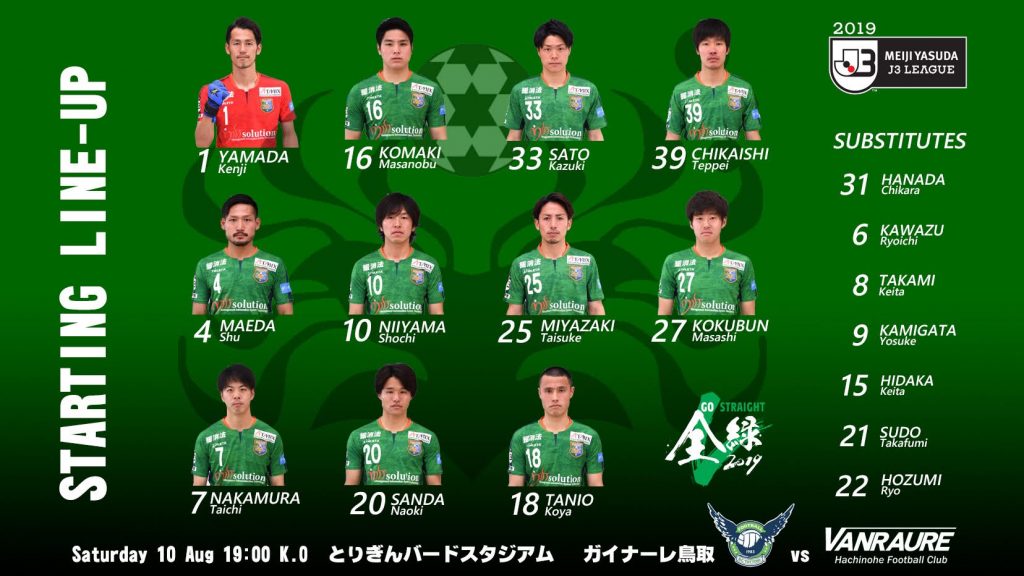 第20節 vs ガイナーレ鳥取との試合結果をお知らせいたします。