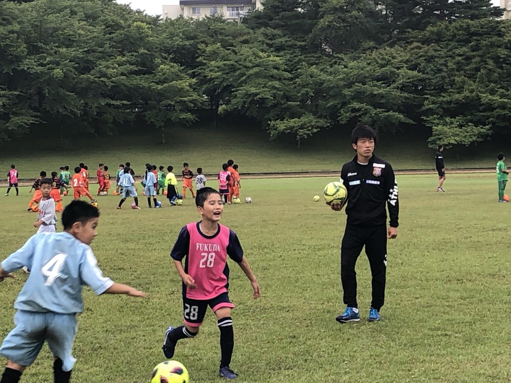 試合終了後、ヴァンラーレ八戸の選手によるサッカー教室が行われました。