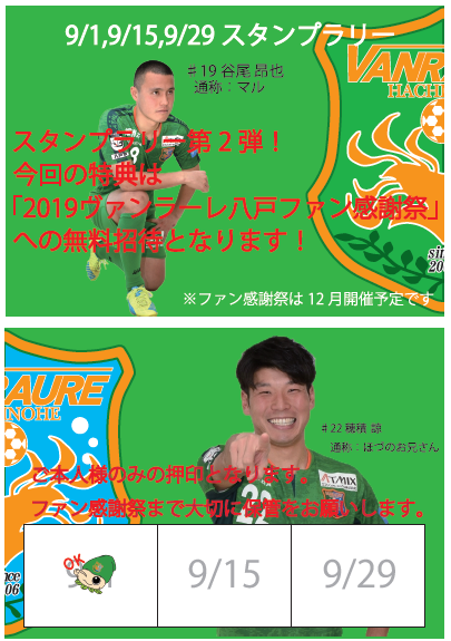 | 9月ホーム3戦 スタンプラリー実施!! |