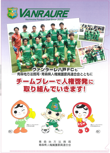八戸人権擁護委員協議会さまが9月1日(日)ギラヴァンツ北九州戦ホームゲーム当日、スタジアム周辺でヴァンラーレ八戸とコラボしたオリジナルクリアファイルを配布します。