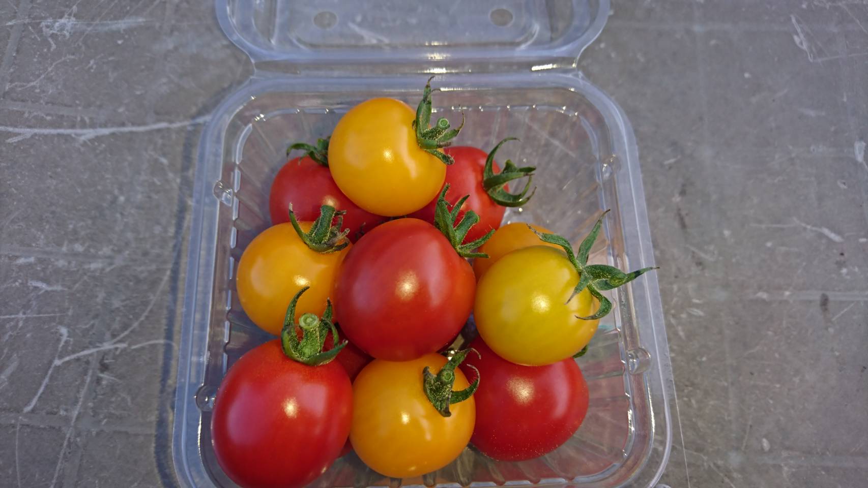 | 商品名 | 賢二のミニトマト 1パック250g¥200 |