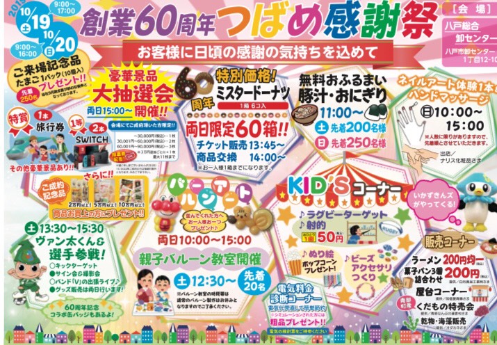 本日、八戸総合卸センターで行われている「創業60周年つばめ感謝祭」に参加しました。
