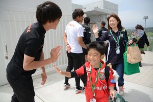 ↓大好評!!選手とのハイタッチの様子↓