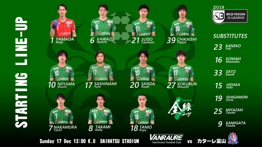【試合結果】2019明治安田生命J3リーグ 第31節 vs カターレ富山