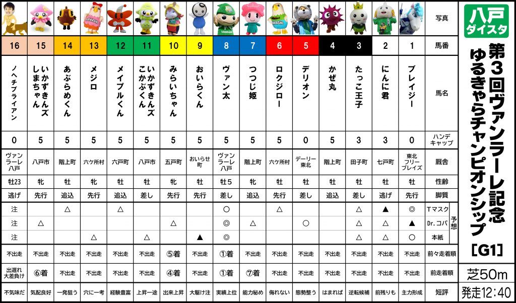 | 第3回ヴァンラーレ記念 ゆるきゃらチャンピオンシップ 芝/50M(ハンデ戦)を開催いたします。!!ぜひ予想的中してヴァン太必勝Vキーホルダーゲットしてください。 ※雨天中止 雨天の場合は中止となりますのでご了承ください。 |