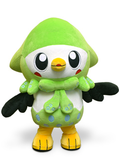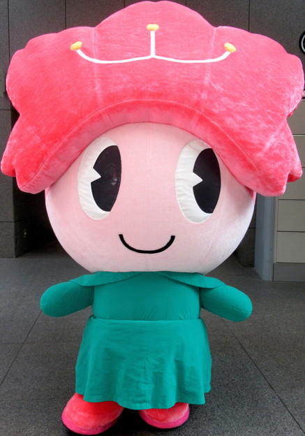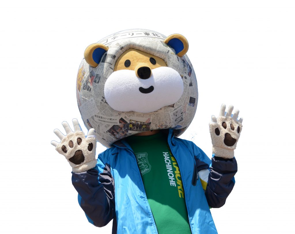 工芸品「五戸バオリ」をかぶった五戸町応援キャラクター