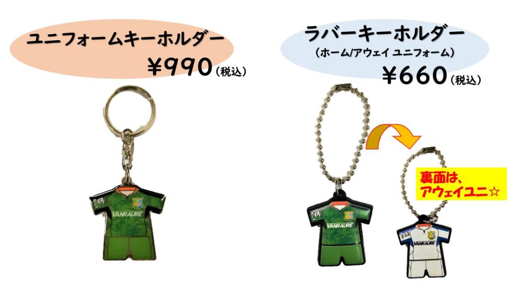 | ③好評のキーホルダー類! 『ラバーキーホルダー』…¥660(税込) 『ユニフォームキーホルダー』…¥990(税込) ![]() |