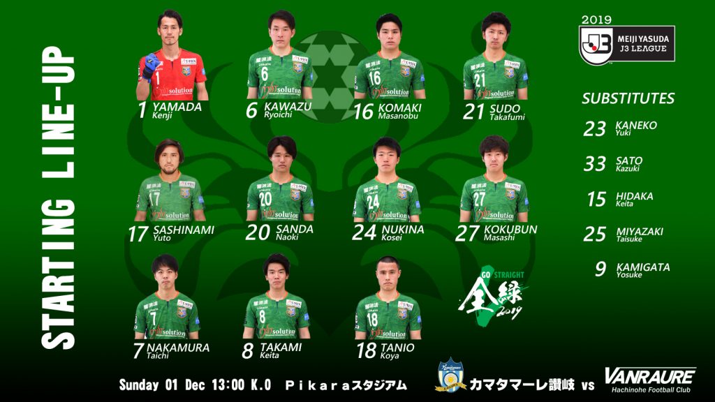 【試合結果】2019明治安田生命J3リーグ 第33節 vs カマタマーレ讃岐