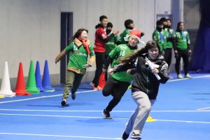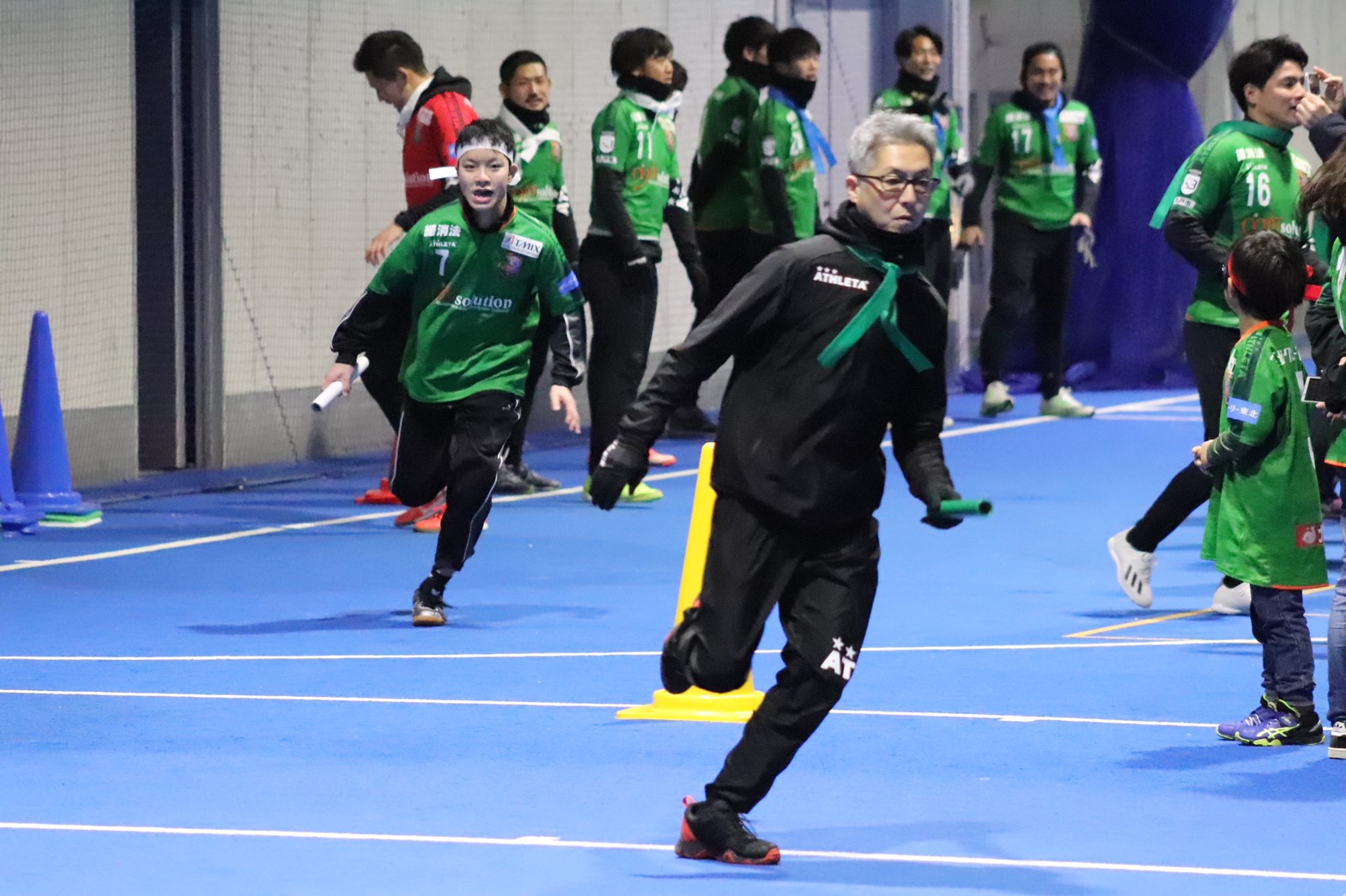 一番盛り上がった競技は参加者全員リレー!選手・参加者がアリーナを走りぬけ、穂積実行委員長も納得の笑顔があふれました。